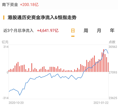 南下资金今日净流入港股高达200.18亿港元,流入规模环比增加近110亿港元,维持流入高位。
