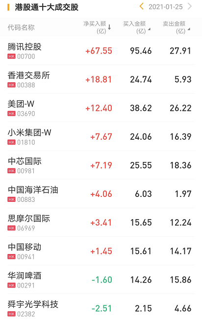 个股方面,今日南下资金净买入腾讯控股67.55亿港元,连续多日为买入之最。此外,南下资金净买入港交所18.81亿港元,净买入美团12.4亿港元。