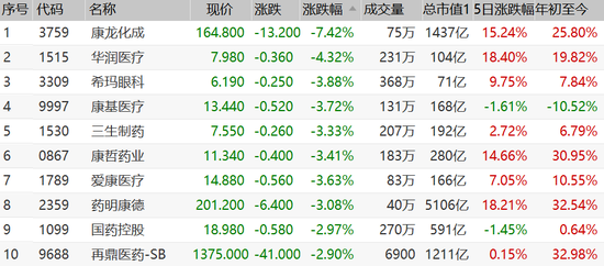 医药股走跌,康龙化成跌超7%,华润医疗跌超4%,希玛眼科、康基医疗等跌超3%。