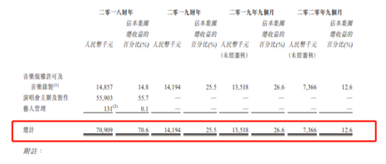 该业务主要通过两个来源产生收益:(i)从许可音乐作品(包括单曲、数字专辑、实体专辑、视频和音乐库精选曲目)中收取的版税费;及(ii)从提供音乐制作服务中收取的制作费。