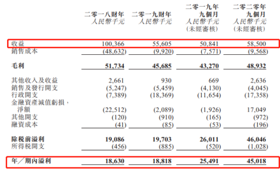 从财务数据来看,2018年,风华秋实的总收入为1亿元。然而到了2019年,情况急转直下,总收入骤降45%至5561万元。2020年前9个月,实现营收为5850万元,同比增长15%。