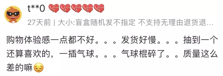 盲盒之所以“盲”,是因为盒子上没有具体标注,盒子里的娃娃充满着神秘感。只有打开的那一刻,你才会知道自己抽到的是小惊喜还是大惊喜。但是对于部分泡泡玛特的消费者而言,抽到的却只有失望。