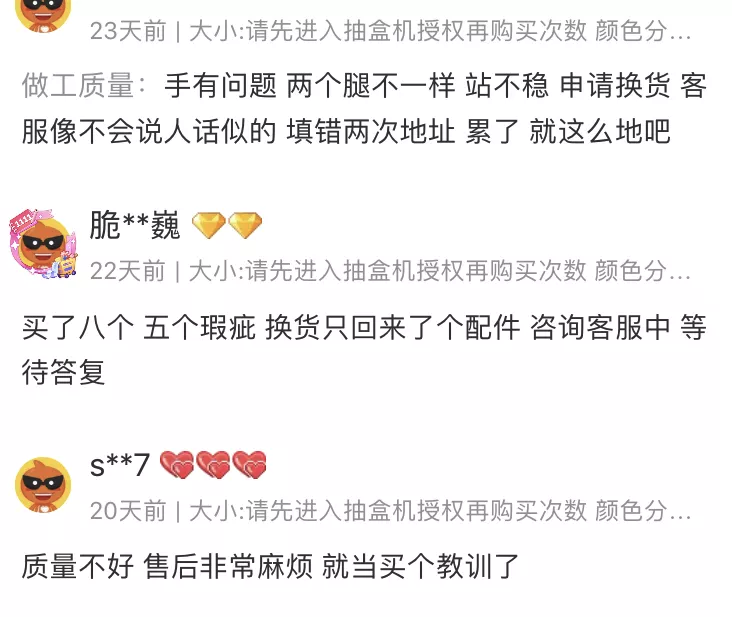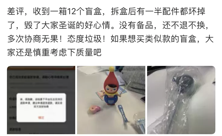 与此同时,“没有备品”也是泡泡玛特备受消费者诟病的方面。
