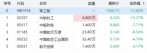 华盛资讯1月26日消息,军工股接连四日走跌,板块指数更一度跌近12%。A股军工股板块指数也跌近8%,近10只个股跌停。截至发稿,中航科工跌超13%,中国航天万源跌超8%,中船防务跌超7%,中航工业国际、航天控股跌超4%。