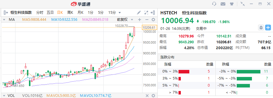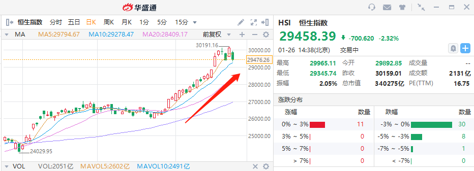 尽管1月26日恒指有所回调,但短短近一个月时间累计涨幅已超13%。