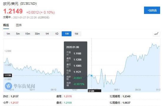 2020年一年,欧元兑美元上涨将近9%涨破1.2300,创2017年以来最大年度涨幅,仅在年末的两个月就涨了将近5%。