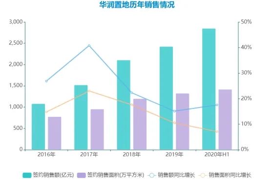 2020年,华润置地定下销售目标2620亿元,最终全年累计总合同销售金额约2850.35亿元,完成全年目标的109%。