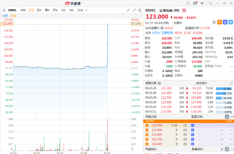 宝尊电商港股大涨30% 拟认购爱点击649349股B类普通股