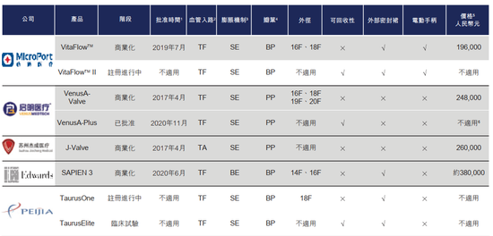 图表四:中国进入临床试验或商业化阶段的主要TAVI产品