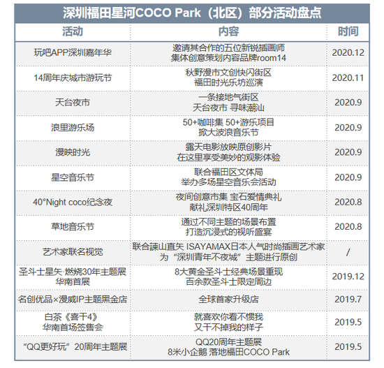 深圳福田星河COCO Park每年举办各类特色活动近百场,包括各类大牌的Pop-Up Store、企划推广活动、IP活动、SP活动等。