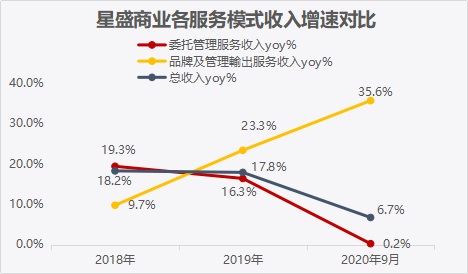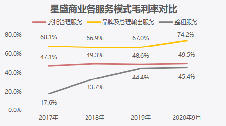 星盛商业服务模式,分三类:委托管理、品牌及管理输出、整租。其中,委托管理服务一直是其收入和利润的主要来源。