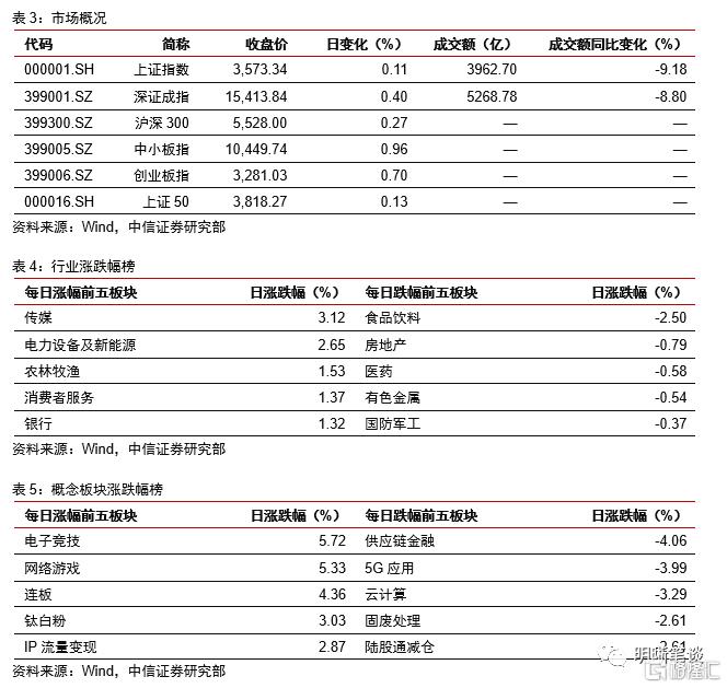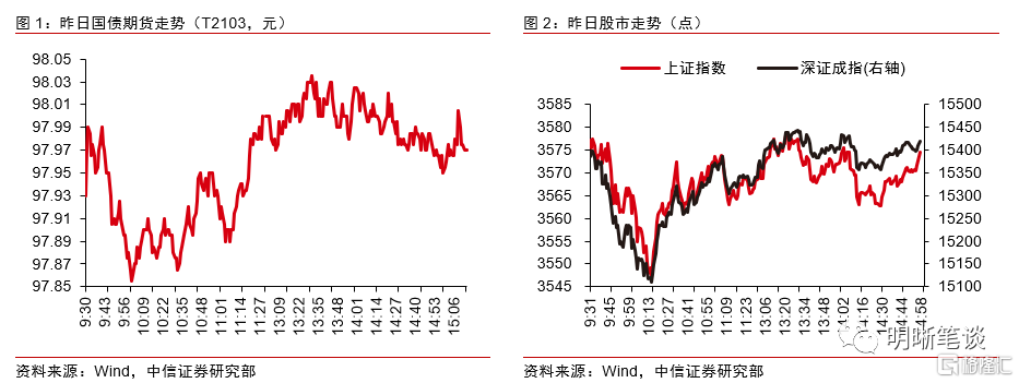 市场延续对货币政策转向的担忧,资金价格继续抬升,但股债市场表现尚可。受央行公开市场操作缩量的冲击,昨日资金面边际继续转紧,早盘甚至出现10%的隔夜拆借成交,但午盘后资金面有所缓解:全天R001报收3.59%,环比上行12.88%;DR001报收3.00%,环比上行8.27%;R007报收4.02%,环比上行20.55%;DR007报收3.09%,环比上行11.08%。债市方面,资金面紧张使得早盘利率债现券收益率攀升,但午盘后收益率亦有所回落,全天银行间主要利率债收益率上行:10年期国债收益率上行0.51bps至3.16%,10年期国开债收益率上行1bps至3.56%,10年期国债期货主力合约涨0.01%。股市方面,昨日股市呈探底回升走势,上证指数收盘涨0.11%报3573.34点;深证成指涨0.4%报15413.84点;创业板指涨0.7%报3281.03点,早盘一度跌近2%。