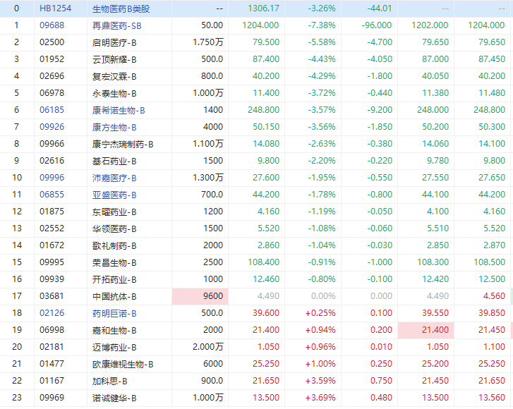 华盛资讯1月28日消息,生物医药B类股持续走低,多只个股已连续下跌三日。