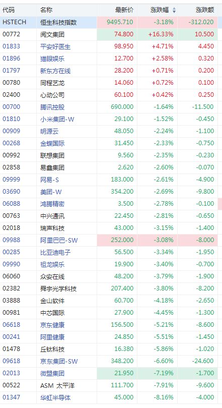 截至发稿,阅文集团逆市涨超16%,涨幅为2017年以来最大;平安好医生涨超4%,猫眼娱乐涨超2%。