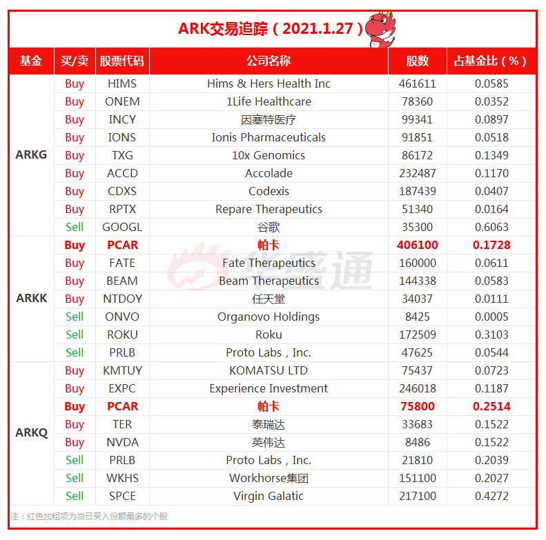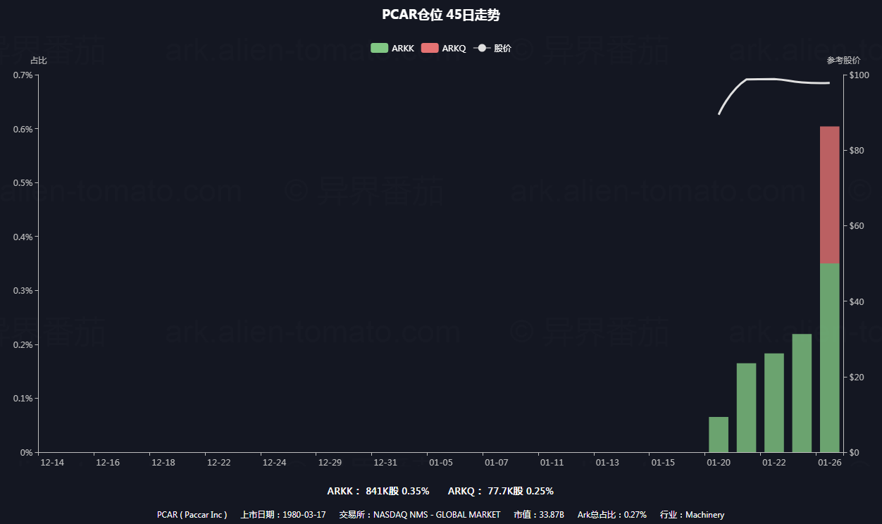 近45日,ARK旗下基金对帕卡的持仓稳步增加。