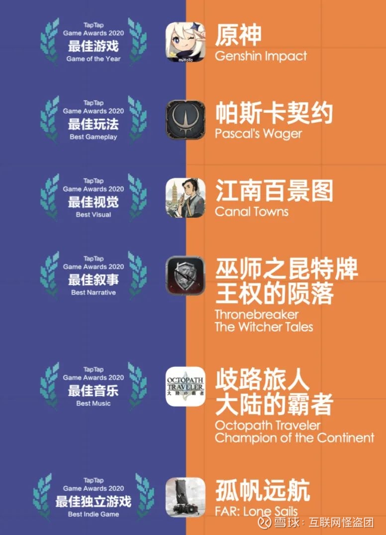 如果你还不能理解,那么看看TapTap大赏的获奖榜单,大致就能理解了: