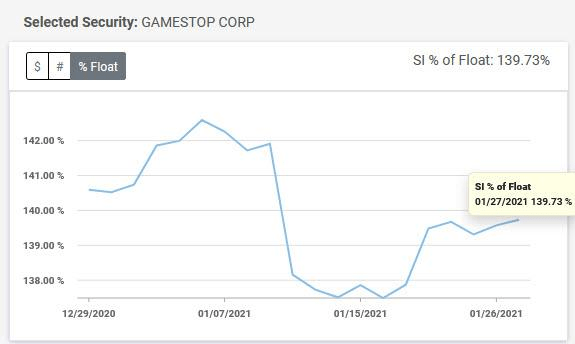即便如此,在美国市场上试图做空GME的机构依然络绎不绝。目前S3 Partners负责人Ihor Dusaniwsky负责提供实时的每日空头头寸跟踪,他表示目前被做空的流通股比例仍然达到了139.7%,已经逼近月初的高位。