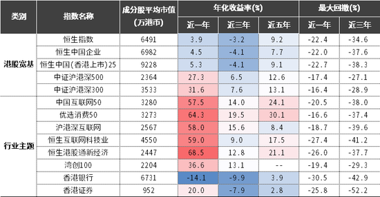 投资港股主要宽基和行业主题类指数历史表现