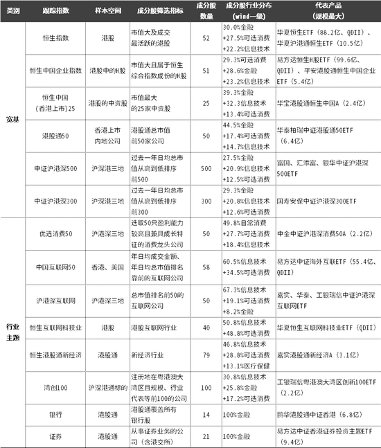 包括跟踪恒生指数、恒生中国企业指数、恒生(中国香港)25指数、港股通50指数以及近期发行的沪深港500、沪深港300指数的基金。
