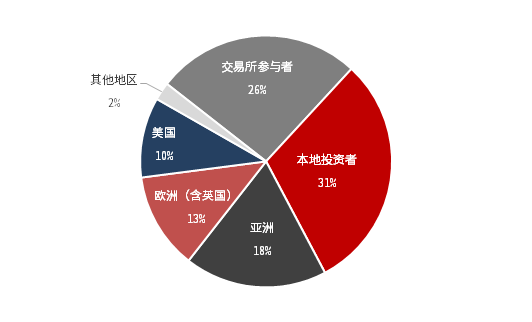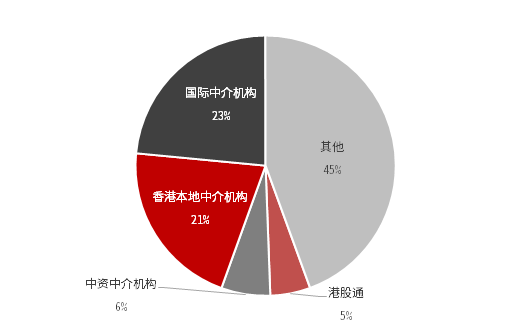 截至2021年1月22日,在港股市值中,南下资金即港股通持股比例已经达到5%;根据港交所2019年报告,外地投资者总共占43.3%,其中以中国内地为主的亚洲投资者交易额占比已达到18.3%,已超过欧洲、美国成为港股市场交易量最大的外地投资者。