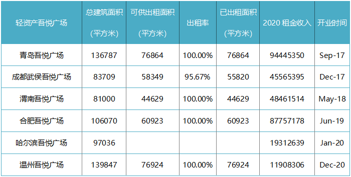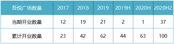2020年上半年受到疫情影响下,只有一家轻资产的哈尔滨吾悦广场在1月份开业,且运营不是很顺利。