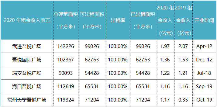 值得注意的是,2020年租金收入前三的吾悦广场中,有3家都位于大本营常州。