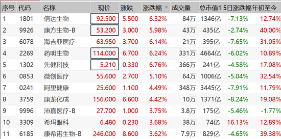 港股医药股领涨恒生行业指数,信达生物、康方生物、药明生物涨6%,微创医疗、沛嘉医疗、康希诺等涨4%。