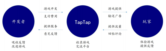 TapTap以广告变现为主要盈利模式,同时游戏在平台上线无需SDK,降低了开发者的上线成本,因此取得游戏厂商的青睐。而公平推荐与优质服务,使得游戏玩家对其粘性较强。不分成吸引厂商→好游戏吸引玩家→平台流量提升→更多厂商入驻,形成了TapTap发展的良性闭环。