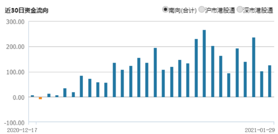 南下资金净流入港股近800亿港元,单日流入保持百亿水平;