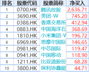 个股资金流向统计:大买腾讯超2636.71亿港元,加仓美团、港交所、中海油