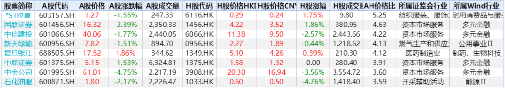 个股方面,ST拉夏、国联证券、中信建投、新天绿能、复旦张江、中原证券等个股位列溢价榜首,投资者可关注相关个股估值回归机会。