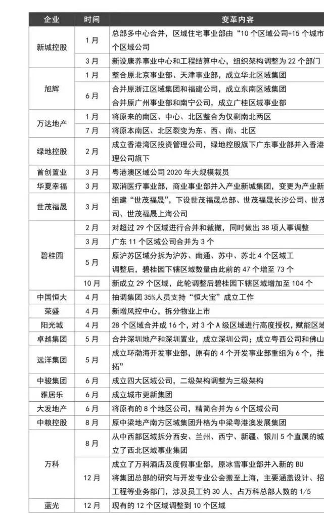以年为单位计算,2020年各大房企的人事变动、结构调整也不少。