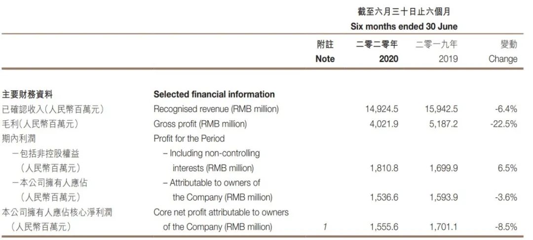 毛利也从2019年同期的51.87亿元,下降10来亿元,至40.22亿元,降幅22.5%。黑天鹅之下还能取得这样的成绩不容易。
