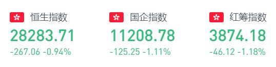 上周五收盘,恒指跌0.94%,报28283.71点;国企指数跌1.11%,红筹指数得1.18%。
