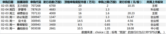 ▼ 附图:2月1日-2月5日A股新股申购信息