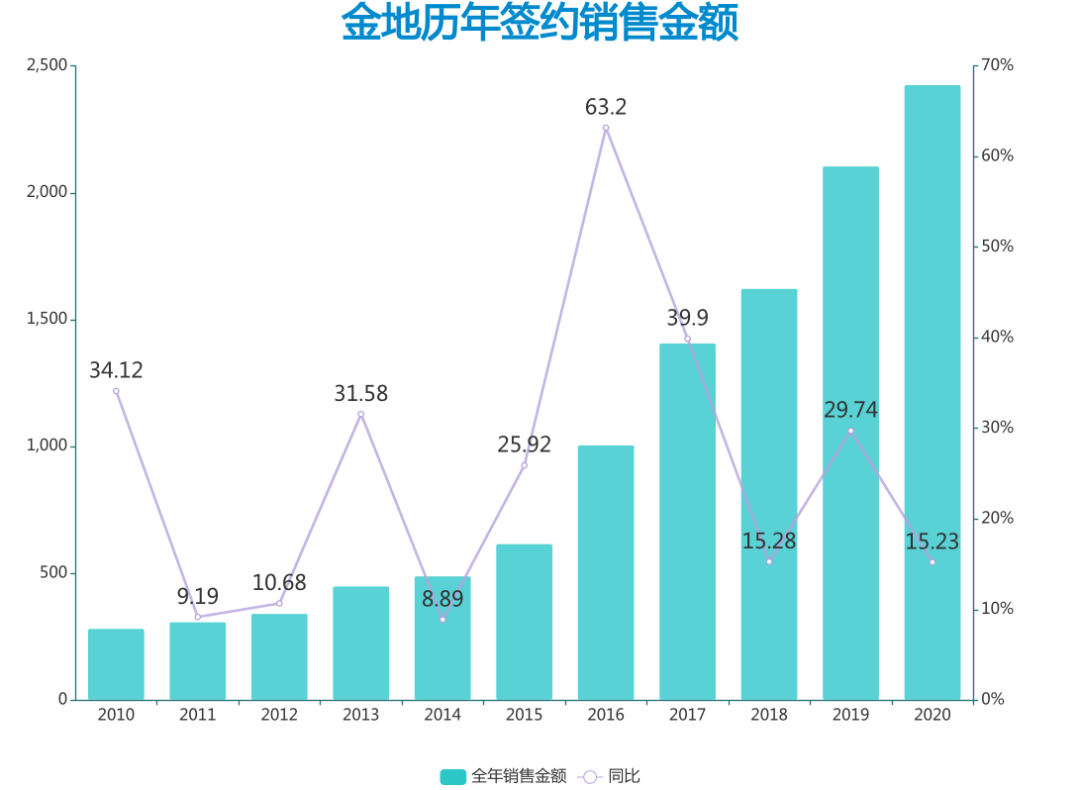 就金地而言,刚刚过去的2020年,销售规模上实现签约金额2426.8亿元,同比上升15.23%。