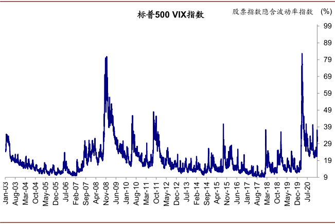 图表: VIX是美股最为常用的刻画风险情绪的晴雨表,其本质是一系列标普500指数未来30天期权隐含的年化预期波动率
