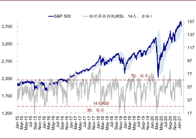 图表: 超买超卖是衡量市场短期情绪饱满度的指标,超买并非一定要以大跌收场,也不是市场长期趋势的判断依据