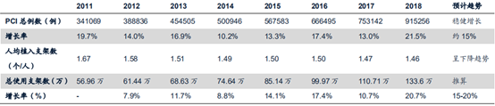 (中国冠状动脉介入手术情况,来源:中国心血管病报告、广发证券)
