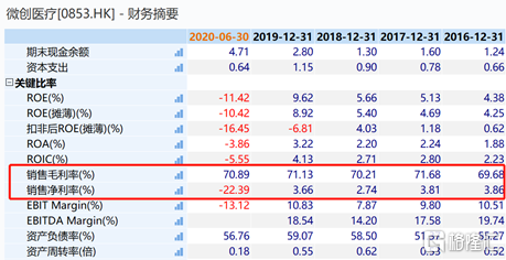 除此之外,高额的销售费用及研发费用也是拉低了其利润的主要原因。微创医疗研发开支从0.52亿美元增加至1.51亿美元,年复合增速高达42.47%,远超于营收增长的速率,更是超过其同期获取的净利润总额。同时,其销售费用占营收比例在35%左右。