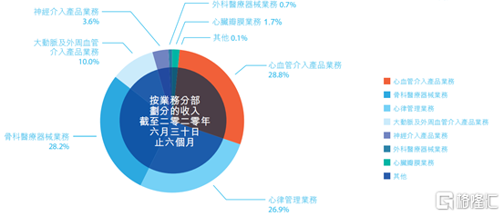 从2020年上半年来看,微创医疗心血管介入(占比28.8%)和骨科(占比28.2%)、心律管理(26.9%)基本形成三足鼎立之势,其余新业务占比仍然较小。