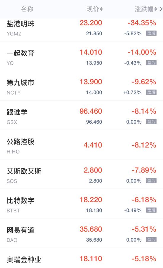 跟谁学跌超8%,网易有道跌超5%,携程跌超2%。