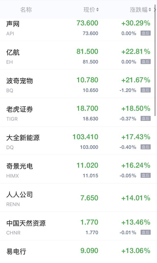 金山云、迅雷涨超7%,陆金所、哔哩哔哩、唯品会涨超6%,腾讯ADR涨超5%,拼多多涨近5%,阿里巴巴涨超4%。