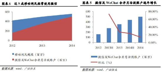 数据显示,超过 8 亿人参与2015年微信春晚红包,2015Q3微信支付渗透率提升至30.8%,同比增长100%;2015年底,微信支付绑卡用户达到2亿;同时,微信MAU和用户粘性也有明显增长。