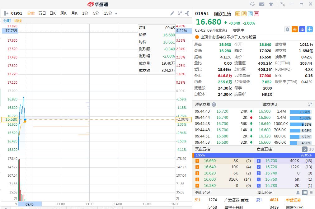 截至发稿,锦欣生殖跌2%,现报16.68港元,成交额达1.684亿,当前总市值为405.2亿。