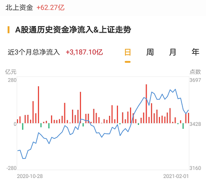 北上资金今日净流入62.27亿元,流入规模较周一也是基本持平。