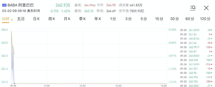 华盛资讯2月2日讯,阿里巴巴(BABA)开盘跌幅略微扩大。