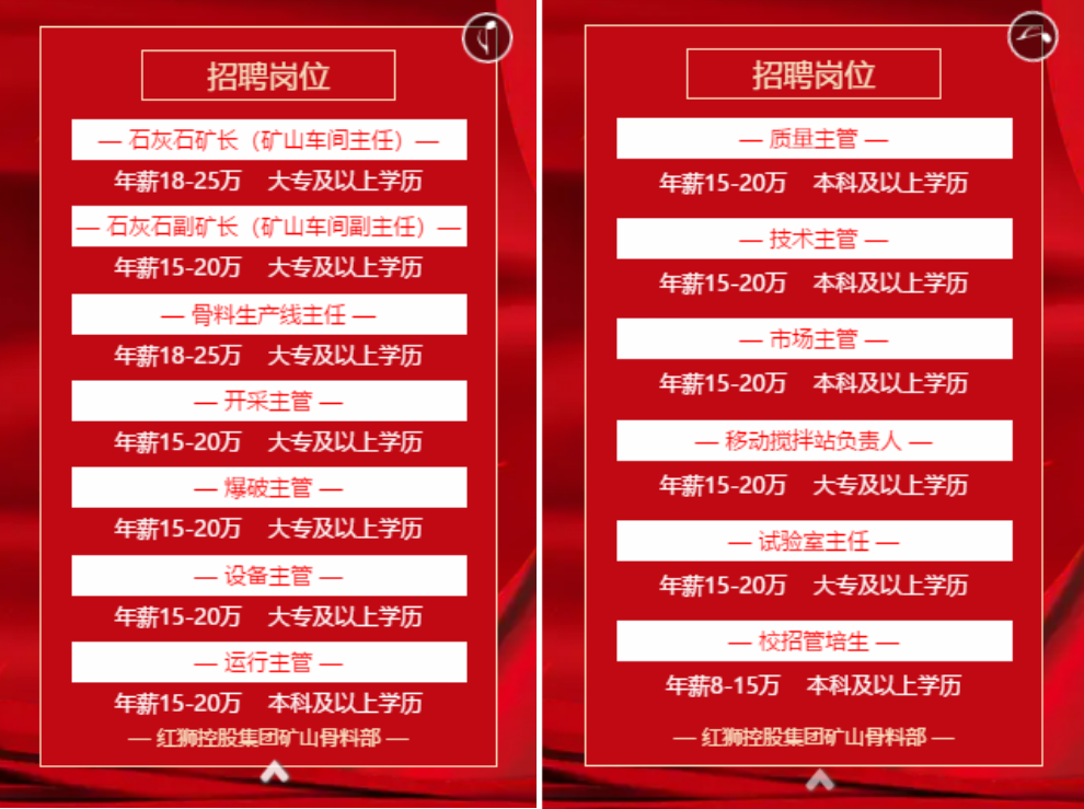 上述招聘中对于校招部分根据不同专业和不同学历校招人员红狮集团的校招管培生年薪为8-15万,海螺集团为8-13万,与部分企业招聘的中层人员持平,可见各大企业对于自有人才的培养都加大了力度。