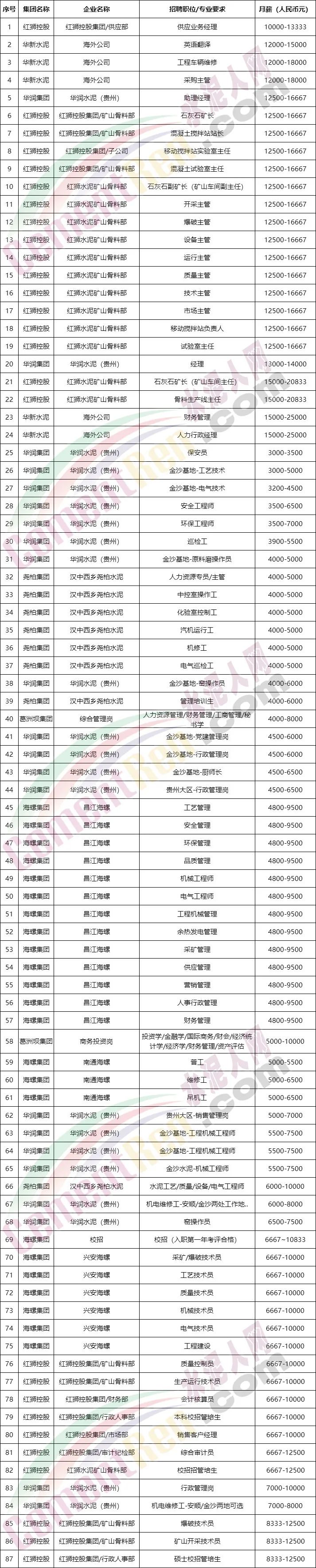 近期各大水泥集团公司纷纷上调工资,招兵买马,小编今天就给大家晒晒,各大水泥集团的最新招聘,对比一下各企业的薪资待遇,哪家强?