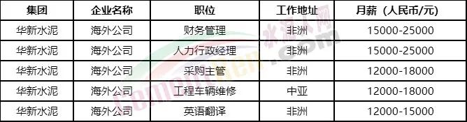 综合上述招聘信息,月薪最高的为华新水泥海外公司财务管理和人力行政经理,基本月薪在15000-25000,年薪达到18-30万。同时红狮水泥矿山骨料部招聘石灰石矿长(矿山车间主任)和骨料生产线主任年薪达到18-25万亦排名靠前。